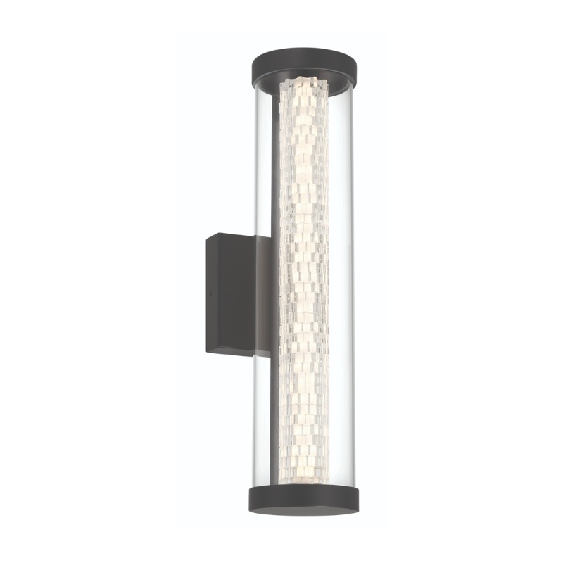Enhance your outdoor ambiance with the Eurofase Savron 18" Integrated LED Outdoor Wall Sconce (46808-011). This modern fixture features a sleek black finish and a clear glass shade encasing a Crystal Pitch™ LED shaft, delivering dynamic and energy-efficient illumination to your exterior spaces.